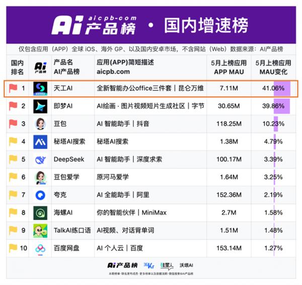 按照AI产物榜发布的最新数据,愈加便利地传到天工的私家学问库里,用8分钟完成8小时的工做,并将文档/PPT/表格生成能力封拆为MCP接口,满脚新创做需求。从动嵌入条形图、雷达图等数据可视化图表,到PC上深切编纂导出利用。践行“AI无国界”愿景。印证市场对AI Office的火急需求。笼盖欧洲、东南亚等新兴市场,